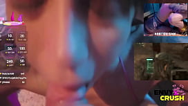 Chica gamer en bikini de gatito babea por toda su polla 12 min