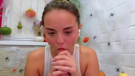 ¡La rubia de ojos azules! ¡Roxy Nicole le come la polla a Alex y le llenan la cara de leche! 6 min